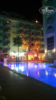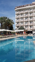 Проживали в отеле с 7 по 15 октября 2023.Начитавшись отзывов,были готовы ко всему,поэтому уже заранее настраивали себя только на положительные эмоции.Начну с того,что от аэропорта ехали больше 2 часов.Приехали в отель около 12.00,вместо 10-20$ в паспорт(как писали в отзывах) я преподнесла привезенный гостинец с оговоркой,чтоб заселили в 1 или 2 корпус.Ближе к 14 часам мы получили номер 1410 на 4 этаже 1 корпуса.Номер стандартный,все работало,только в ванной при включении тек кран в раковине,причем хорошо тек,на столешнице возникала лужа и стекала на пол в угол комнаты.Мы не стали никого вызывать,насмотревшись как 3 дня подряд женщина вызывала к себе в номер ремонтника,а он все не шел,просто подкладывали губку и тряпку и периодически вытирали.Тряпки привезла с собой чтобы помыть ванну.Ванна и унитаз видимо не мылись никогда .Номер порядком убитый,уборки не было за 9 дней ни разу,только выносили мусор и докладывали т/бумагу и мыло с шампунем.Карточку дали только одну от номера,соответственно уходя кондиционер переставал работать,а если оставляли на ночь дул прямо на кровать.Полотенце при заселении было только 1 для ног,обратились на рецепшен,сказали ждать до завтра,на следующий день подошли опять выдали только 1 комплект,сказали больше нет.Мы 2 дня вытирались 1 полотенцем.Через 2 дня, о чудо!!, второе большое полотенце положили,но так же через 2 дня оно чудным образом исчезло....Постель не меняли ни разу за время прибывания.Хотя слышала разговор женщин,которые говорили,что просили горничных дать им запас т/бумаги,несколько комплектов полотенец и не приходить к ним убираться весь период проживания.Получается у кого то в номере несколько комплектов полотенец,а кто то довольствуется одним на двоих весь период проживания.Наш номер выходил на бассейн,и столовую,вид конечно красивый,но минус ,что стеклопакет на балконе никакой,что с открытым ,что с закрытым окном,дискотека до часу ночи не уснуть даже в берушах.В номере были рыжие муравьи.Но мы в номер приходили только спать,поэтому внимание на это старались не обращать.Интернет бесплатный тянет еле еле только у рецепшен,очень много народу пользуется,платный удалось купить только на 3 день,не было человека.Он тоже тормозной,если в номере еще ловит,то на пляже уже нет.Вода питьевая в кулере,там же типа Юпи напитки.Кофемашины работали,чай в заварниках,если заканчивалось кофе,сахар-пополняли.Айран в снек баре.Про столовую: кто был в Турции знают,что все стандартно завтрак-оладьи,яичница,каша,йогурт,мюсли,сосиски,булочки,овощи,обед-2 вида супа,селедка тушеная(гадость редкостная),ножки куриные,индейка во всех вариациях,шампиньоны с овощами,рис,макароны,тушеная капуста,пюре,брокколи,наггетсы,овощи,зелень и всякие закуски и соленья.Сладкий стол так себе( в турецкую ночь были красивые тортики),из фруктов -яблоки 2 вида и апельсины,на ужин арбузы,2 последних дня начали давать мандарины.К ужину добавляли еще на гриле что нибудь курицу,скумбрию,селедку,дорадо( было 2 раза за неделю).Народ за 15 мин до ужина уже начинал собираться в очередь в столовую,такая дикость,и как только открывается красная лента бегут,как голодные, сметая на своем пути все...а турки улялякают ,как пастухи в поле гоняя баранов.Мы в Турции 5 раз но такое видим впервые .Со столами и приборами были проблемы,но походя и поискав можно было найти и стол и