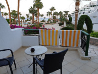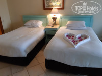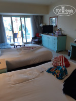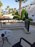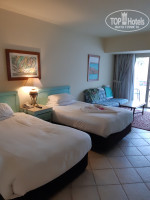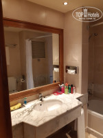 В номере помимо чайника и чайно-кофейного набора есть еще утюг и гладильная доска. Жили на нижней террасе в 1109. Там 3 бассейна из 5, в т.ч. с морской водой. Море, а точнее пляж, сразу за ними. Там же и пляжный бар. За ним самое козырное (на мой взгляд) место с лежаками (под лохматыми зонтиками). Занимали лежаки чуть не в 5 утра (благо из номера 2-3 минуты до него) - желающих до пса. В море 2 захода: с пантона (правее, если смотреть на море) и по плитам (левее, если смотреть на море). Плиты скользкие... Мебель в номере, видимо, со времен когда этот отель назывался Хилтоном, но это не парило. Зато места в номере полно. И диван, и столик журнальный, помимо кроватей, и балкон с выходом прямо на бассейны. Уборка ежедневно, но если не использовал или не убрал мыльно-рыльные принадлежности в тюбиках - новую партию не положат. Работает 1 из 2 фуникулеров (столовка на 4 от моря террасе зданий). На верхней террасе, по выходу из основного здания, около спа, есть бассейн с водопадиком. Там, как правило, мало народу. За пределами территории отеля, направо, наискосок - торговая улочка. Все как обычно: футболки, сувенирчики, крема, масла и т.п., там же магазин фиксированных цен Манго (сходите, много чего и вполне приемлемо). А, да, брала с собой письмо Топхотелс. Помогло или нет - не знаю, но нам при заселении на рецепшн, за 30 баксов, предложили из стандарта (не нижняя терраса) перебраться в 1109. Не пожалели ни секунды.