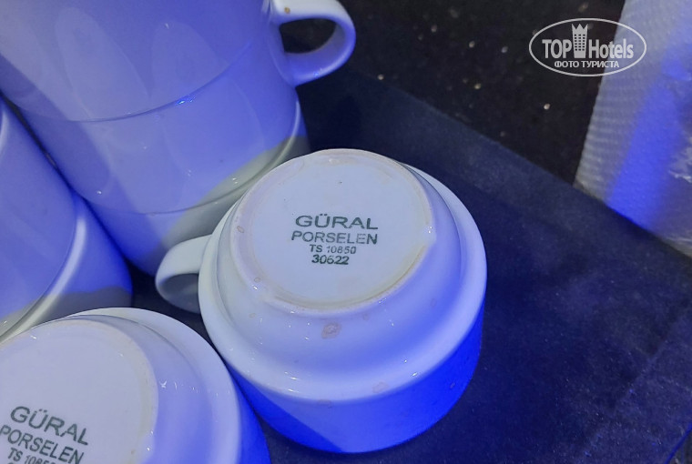 Посуда в отеле явно недомытая, встречались чашки со следами кофе. Тарелки с разводами, приходилось несколько штук снимать со стопки и искать чистую. Ложки и вилки дополнительно протирали салфетками. Видимо из-за этих условий на третий день я заработала отравление, как выяснилось позже данное заболевание присутствует у 50% гостей.