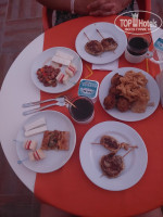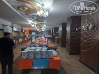 Питание в данном отеле это отдельная тема. Достаточно однообразно но выбор хоть какой-то есть. Каждый день на завтрак были 3 вида яичницы, оладьи, 4 - 5 видов варенья, примерно такой же выбор сыров и разные виды булочек. На обед было 2 вида супа, непонятные десерты с разноцветными бисквитами, пахлава, макароны 2 видов, соус, индейка запеченная, картофель запеченный, и большой выбор непонятных салатов и зелени. Также с 11:30 до 15:00 работает снек-бар, там были запеченные овощи, картошка фри, бургеры и а-ля нашей шаурмы, а также лепешки. На ужин уже было разнообразие, мясо на гриле, рыба, картошка фри, запеченные овощи, курица на гриле (очередь за которой была огромная, и многие лезли вне очереди), также были непонятные десерты и салаты. Колбаса или ветчина, так и не поняли, что это было была не вкусная, одна пара говорила, что в какой то день, эта колбаса была липкая.