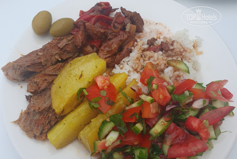 Питание выше всех похвал. Всё свежее, вкусное и разнообразное. Разные виды мяса постоянно. Баранина просто сказка. Десерты очень вкусные. Обязательно попробуйте тарталетки с бананом. Море фруктов и овощей, есть стол ПП. На завтрак бесплатный апельсиновый фреш. Это что-то! Огромное спасибо поварам. Видно, что персонал старается от души. Ребята официанты всё быстренько убирают, наводят чистоту, всегда с добром и улыбкой. Просто молодцы! По алкоголю ничего сказать не могу, так как не пью.