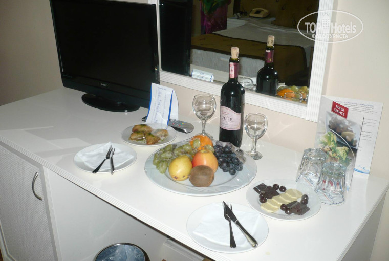 Периодически проводятся конкурсы, дискотеки. В барах и ресторанах живая музыка. Очень много народу. Много молодежи, новобрачных, детей, пожилых людей, то есть отдых для всех. Замечательный большой пляж, чистое море, много бассейнов, баня (платная и "бесплатная"), всякие развлечения. Отношение персонала, исключая ресепшн, как всегда, радует. Официанты - трудяги. Очень внимательные и приветливые. Номер нашей комнаты - 3310. Советую! Находится в третьем корпусе. Сантехника там нормальная, все работает, шума не много. Удивило и порадовало, что при заселении в номер мы обнаружили, что на столике нас ждут вино, шоколад и фрукты, поглощением чего и занялись сразу, раскинув чресла на волшебном балконе под шуршание листьев дерева, растущего перед ним :-))). Приятно то, что в номере убирались каждый день, по приходу с пляжа всегда попадали в чистую комнату. Понравилась яичница с сыром и колбасой по утрам, гезляме, мороженое, айран, обилие фруктов. Жаль, что нектарины давали всего пару дней. Работой Пегаса снова остались довольны.