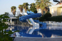 Отель не новый, но сантехника, мебель и состояние еще не очень "уставшее". Бывает гораздо хуже. Территория относительно небольшая, ухоженая. Вход в море галька размером 1-5см. "Лягушатника" нет, глубина нарастает весьма быстро. Спасателей нет. Есть бетонный пирс, на нем лежаки, тенты, лесенка для спуска в воду. На пляже лежаки с матрасами, сверху натянуты тенты. Мы были в окончение сезона, лежаков всегда хватало. Есть бассейн с лягушатником. У бассейна вообще почти пусто было - бассейн холодный уже был. Это не означает что в сезон тоже свободно. 95% гостей русскоговорящие. Чуть-чуть было поляков, молдаван, немцев. Персонал говорит по русски. Отель позиционирует себя как UAI. Этим там даже не пахнет. Питание чуть лучше чем как тут принято говорить "голодными не останетесь". Спиртное: пиво вполне норм, белое и красное вино (не пробовали) и 4 местных "напитка" из которых бармены делают все: ракия, водка, водка с ароматизатором виски, водка с ароматизатором джина (жутчайшая дрянь). Плюс к этому различные сиропы и вот вам все "коктейли". Наливают до 02:00. Из безалкогольного пепси, фанта, спрайт, растворимые соки, чай-кофе-какао из автомата. Наливают в 200г пластиковые стаканчики, берите с собой свои стаканчики и термокружки. Вечером на ужине наливают в стекло. В концепции указаны два ресторана а-ля-кард, не обнаружены. Вероятно из-за окончания сезона. Бара на пляже нет. За напитками надо идти через всю территорию к бару "у бассейна", он же "бар расторана". Есть зона "перекуса" с гамбургарами и лепешками поближе к пляжу, во время ее работы безалкогольные напитки и пиво можно брать там. Общее впечатление: типичный отель AI без изысков, выпендрежей, косяков.