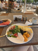 Как только зашли в главный корпус, был сначала шок, потому что все стеклянные стены и двери были заляпаны, всё в отпечатках рук, такое ощущение что стекло не мыли вообще никогда. По лестнице, ведущей на второй этаж было разлито что-то липкое, причем давно, потому что на эти пятна-разводы уже налипла пыль. В самом бистро не было посетителей кроме нас, но найти чистый стол не получилось, т.к. все в каких-то засохших пятнах и крошках. Причём это были столы уже подготовленные к гостям, прямо на грязный стол постелены салфетки и лежат приборы. Из бистро открывался потрясающе красивый вид на море в панорамных окнах, которые тоже были все в подтеках-отпечатках рук-птичьем помете.
