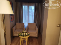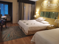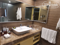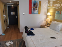 Приехали в отель примерно в 9-30 и уже в 10-00 были в номере. Номер бронировали улучшенный категории на 1-ой линии. Номер нам дали в 5 корпусе, в самом углу - около въезда в отель (номер 5204), с видом на соседний корпус и немного на бассейн, который расположен между корпусами. Номер очень маленький! Когда поставили кровать ребенку места вообще не осталось. Мы обратились к сотруднику на рессепшен с просьбой сменить номер. После долгих уговоров нам предложили переночевать одну ночь в этом номере и после обеда на следующий день подойти. Что мы и сделали. На следующий день нас переселили в 21 корпус (номер 21018). Номер категории делюкс, расположен на 1 этаже, с выходом на территорию. Номер побольше предыдущего. Здесь уже 2 кровати и можно свободно передвигаться по номеру. Поэтому если вы планируете отдых с детьми не берите стандарты и улучшенные номера - они очень маленькие (ну или нам такой попался). Этот корпус имеет уже более удачное расположение, чем предыдущий. Рядом бассейн, недалеко ресторан, снек бар, море, амфитеатр/сцена (где проходят вечерние представления). В номере из мебели все стандартно: 2 кровати, 2 кресла, стол с зеркалом, шкаф, сейф, мини-бар. Мини бар пополнялся ежедневно - докладывали то, чего не хватает. Чай, кофе тоже есть и пополняется. В ванной комнате хорошая косметика: шампуни, бальзамы, гели для душа и лосьон для тела. Так же есть одноразовая бритва и зубные щетки. Обратите внимание, что в ванную комнату нет двери! Убирали номер каждый день. Уборка очень хорошая - ребята молодцы.