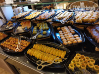 Еда: основной прием пищи конечно в главном ресторане. Он 2-х этажный. И на первом и на втором этажах играет живая музыка. В первый день ходили кушать на 2 этаж (через главный вход - вроде как и первый), а после переселения в другой номер подошли к ресторану с другой стороны и попали на первый этаж. На 1-м этаже нам понравилось больше (не знаю почему), поэтому все остальное время ходили сюда. Еда разнообразная, конечно не Турция, с которой все всегда сравнивают, но все очень вкусно. На завтрак всегда были фреши из апельсинов, яблок, клубники и манго - очень вкусные. Столы свободные были всегда. Убирают все быстро. Официанты постоянно подходят и спрашивают про напитки. Работают шустро - молодцы!