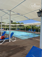 Пляж . Мелкая галька ,вход резкий . Буквально 2 метра от берега и уже по шею . Бывало что не хватало лежаков ,тогда сами приносили от бассейна на пляже . Да ,на пляже есть 2 бассейна под навесом ,детский был очень грязный.