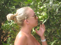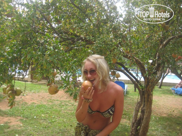 Территория: отель небольшой, вокруг можно обойти за 5 минут..территория красивая, растут гранаты, бананы, какие-то цитрусовые, мы думаем, что мандарины, тут же огромные кактусы, вообщем зелени хватает! 2 бассейна, один около моря (с соленой водой), другой - с пресной водой в глубине отеля. Есть фантанчик у бассейна. Есть детская площадка.