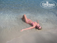 Пляж: пляж не широкий, но длинный, лежаков в принципе много, всегда какие-нибудь, но найти можно. Мы сначала ходили к морю, но потом перебрались к бассейну - и ноги не в песке, и море близко - лежали у бассейна, купались в море, а при выходе с пляжа есть своеобразная ванночка для мытья ног, т.е. в бассейную зону все выходят с чистыми ногами))) На пляже душа нет, только у бассейна. И не ищите там крантиков - просто встаньте на решетку, водичка и польется)) Шезлонги (мы их называли раскладушки) и зонты - бесплатно. Мы вставали довольно рано - в 7.30, занимали места у бассейна и шли завтракать, всё было отлично, но к концу отдыха приехало много туристов, отель был полон, поэтому бичгарды ходили и снимали полотенца, если тебя нет рядом. Еще одна особенность - напитки на пляж проносить нельзя, только у бассейна!!!! Море хорошее, но уж больно мелкое...плывешь, плывешь а тебе по пояс оказывается...Купаться надо левее, там нет камней, но вы поймете, там все плавают. Еще у нас пару дней был шторм и нагнало водорослей, типа морской капусты что-то...и она вся осела на дне, было неприятно плавать над черной бездной какой-то...Еще будьте аккуратны - морские ежи, оказывается они бывают не только на камнях, но и в этих водорослях! Еще там есть малюсенькие рыбки, когда ты стоишь в море, они подплывают к твоим ногам, причем не как большинство нормальных рыб - ты начинаешь двигаться и она в рассыпную, а наоборот - куда ты, туда и они. Позже нам сказали, что они щипаются)) У бассейна есть джакузи, сразу скажу - кнопки включения слева от лестницы, а то забавно смотреть, как люди сядут и ждут пока кто-то включит)))