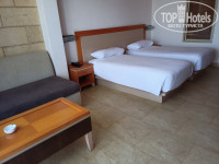 По приезду в отель оказалось, что в отеле свободен только один номер, не считая съютов. Отель заполнен под завязку. в прошлые наши поездки на выбор предлагали два - три номера. Предложенный нам номер оказался в первом корпусе на первом этаже, прямо под системой кондиционирования. В номере было очень шумно от работающих на крыше кондиционеров, даже не смотря на то, что мы отключили свой кондиционер. На ресепшене на следующий день нам не смогли предложить номер с учетом наших пожеланий (мы просили первый этаж во втором или пятом корпусе), но как постоянным гостям предложили без доплаты, номер в четвертом корпусе на втором этаже с видом на море и в качестве презента от отеля мы получили тарелку с фруктами. Номер со следами недавнего ремонта, но к сожалению с заметным износом мебели, впрочем это совсем не критично. Уборка была регулярная, убирались хорошо, все что положено пополнять пополняли, но за две недели постель так и не поменяли, а это как то...