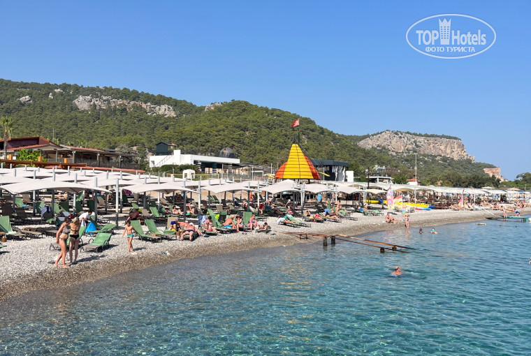 Пляж - море прекрасное, кириш, мелкая галька, всё отлично, температура воздух 28, вода 27, отлично. если придёте после 10 утра, мест нет, от слова совсем, наши туристы, коих в алинде %75 занимают все лежаки полотенцами. приходилось с утра делать так же. Выдача полотенец только возле пляжа, в аквапарке нет, т.е. надо пойти весь отель, что бы поменять или сдать, хотел поменять в спа, на что с недовольным лицом дама ответила, где взяли полотенца, там и сдавайте!!! Пирс в конце октября наполовину разобран, но попрыгать можно.