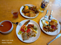 Были в отеле 3 дня в несезон, в ноябре. Расположение отеля очень удачное, 200 метром до центра, Белой башни, магазинов. Номера почти все с видом на бассейн, но очень плохая звукоизоляция, до 23.00 играет громко музыка, если кто с детьми и любит рано ложиться спать, то это вряд ли удастся. Питание неплохое, все вкусно, но завтраки очень скудные, каша какая то непонятная, в молоке плавают овсяные хлопья, зато есть яйца, а сними голодными не останешься. До пляжа минут 10, но он такой узкий, не уютный, мы ходили к порту, там есть пляж Марина, он широкий, песочный, типа бухты, там красиво, кораблики стоят. Территории практически у отеля нет, бассейн и столики вокруг него, но очень уютно смотрится. Вай фай платный, 1 доллар на одно устройство в сутки, скорость отличная. Для 3 дней нормально, дольше там делать нечего.