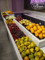 Ассортимент еды на завтрак вполне стандартный и очень неплохой. Яичница, скрэмбл, яйца в мешочек, омлет с начинками по выбору (готовят прямо при вас). Несколько видов йогурта, как с наполнителями, так и без, в которые вы сами можете добавить что хотите по своему вкусу. Есть аппарат для приготовления тостов, рядом джемы, варенья, мёд, для которого рядом лежат специальный тарталетки, консервированные персики, вишня и тд. Много видов сыров, как твёрдых, так и творожных. Различные нарезанные колбасы и сосиски (вот колбасы и сосиски турецкие мне нигде никогда не нравились, наверное, они у них везде такие невкусные). Всегда была овсяная каша, я не ел, но жена сказал, что отличная. Много видов хлеба и выпечки (как сдобной, так и обычной), круассаны, пирожные. Много зелени и овощей, как отдельно, так и в виде салатов. Много оливок (обычные и фаршированные), соусы и масла. Естественно, чай, кофе, соки. Утром был свежевыжатый апельсиновый сок в отдельной ёмкости.