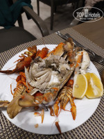 Ассортимент мяса очень хороший. Всегда была говядина или телятина в разных видах, баранина (чаще в виде котлет), курица, индейка, рыба – всё это в совершенно разных видах (от тушёной до жареной). Каждый день были куриные крылья в кляре типа KFC, часто было, примерно, такое же рыбное филе. Вечером всегда была рыба на гриле – дорадо и ещё какая-то (мне кажется, морской судак). Несколько раз была красная рыба, как запечённая целиком, так и в виде стейков. Во второй день пребывания на ужин были раки и крабы, причём не маленькие, размер соизмерим с тарелкой. Крабы мне очень понравились – нежное вкусное мясо. Несколько видов овощей на гриле, фаршированные перцы и баклажаны.