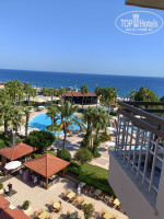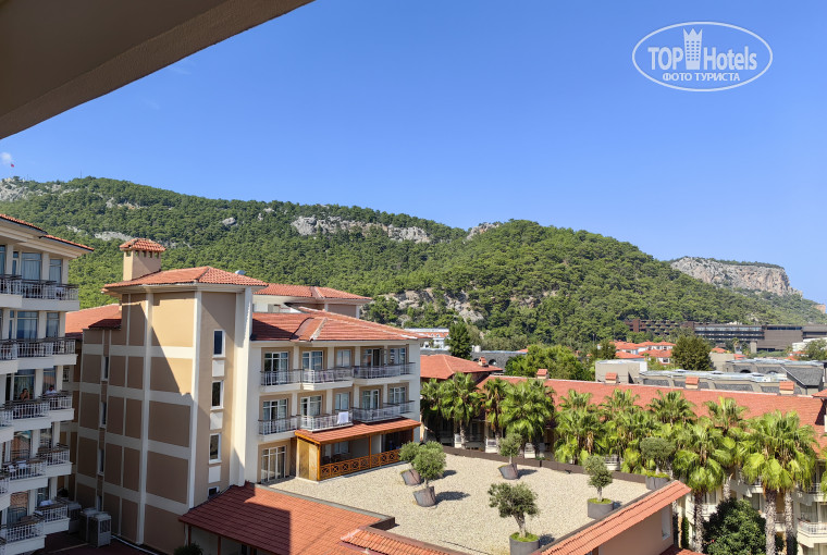 ЗАСЕЛЕНИЕ. Приехали мы в отель рано, где-то 09.30. Заполнили анкеты, выпили предложенные прохладительные напитки и нас отправили на завтрак. После завтрака выдали сразу ключи. Хочу отметить, что номер был забронирован стандарт в главном корпусе с видом на окрестности, но нам сделали бесплатный апгрейд с видом на море на 4 этаже. Вид, кстати, шикарный, впереди море, сбоку горы. Но если нужна тишина, то это не сюда, дискотеку слышно очень хорошо (до 00.00).