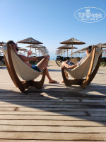 Пляж чистый, просторный, у бара на пляже очень комфортные зоны для отдыха с диванчиками, креслами, большими зонтами. Вход в море НОРМАЛЬНЫЙ. Адских плит, про которые некоторые пишут, там нет. Если заходить слева от пирса - то вполне себе нормальный вход. Брала с собой коралки, но даже ни разу их не надела. Справа от пирса есть плиты, но они прямо рядом с пирсом и заходить там совсем не обязательно. На пире есть шезлонги, зонтики.