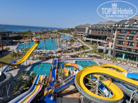 Территория ухоженная, но еще не достаточно озелененная, но у акваторий куча лежаков под зонтами и спрятаться от солнца есть где. Бассейны в начале октября были холодноваты, видимо, из-за их большой площади не успевали прогреваться после ночи, но 1 бассейн, как мы поняли, с подогревом (слева от выхода с лобби). Бассейн-мальдивы дети, конечно, изрядно "потаскали" уже, но это вопрос к родителям, которые просто смотрят как их детки кидают песочек в бассейн, и ничего им не говорят. Аквапарк достойный, много горок, для нас было плюсом, что детей пускают независимо от роста, если ребенок с родителями. Детский аквапарк ооооочень холодный и ледяные брызги от него моего ребенка испугали больше, чем горка-кобра)))))