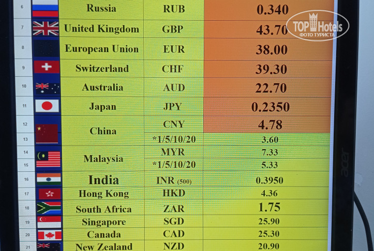 По обменникам - рядом их несколько, курсы лучшие в округе. Специально прикреплю фото обменника около отеля и обменника в аэропорту по вылету. Разница огромная. Кто планирует закупаться в дюти-фри по вылету - делайте выводы и запасайтесь батами на Кате.