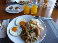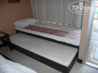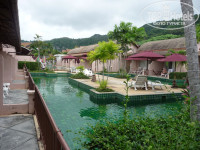 Теперь по порядку: В отеле встретили очень радушно, быстренько оформили документы, взяли депозит 1000 бат (по выезду его вернули), и минут через 10-15 мы были уже в нашем номере deluxe sun terrace pool access. Оговорюсь сразу, что сто раз не пожалели, что выбрали такой номер. Большая терраса с лежаками и прямой выход в бассейн из номера - фишка этих номеров. В номере есть всё, как в описании. Номера не сильно современные, в тайском стиле, но мы вроде как и летели в Тайланд. Сейф, бар, телевизор, чайник, фен, сантехника - всё исправно работало. Убираются в номерах хорошо, причем не только подметают, но и влажную уборку делают - моют то есть. В других отелях мы сталкивались с тем, что девочки придут, приберутся, подметут и всё. Тут с этим хорошо, жене даже понравилось. Звукоизоляция между номерами слабая - это конечно минус.