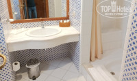 Жили мы в той «Домине», что называется «Беллависта». В целом – всё нормально, я, откровенно говоря, ожидал более «уставших» номеров. Но здесь, видимо, был не так давно косметический ремонт. При этом мебель осталась прежняя. Из нового – только телевизор ЖК, большой с парочкой российских развлекательных каналов. В санузле помимо унитаза есть биде, а вот душ откровенно смешной: маленький, да ещё и со шторкой. И это в 5-звёздочном-то отеле…