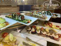 Еда была в таком изобилии, что мы прибавили по 3 кг! салаты , овощи резаные, зелень, закуски комбинированные, слоями, мясо разное, курица, рыба, креветки, обязательно пирожные видов 15 на обед и ужин, на завтрак сладкие булочки с фруктами. Фрукты: гранат, бананы, яблоки, груши, гуава, апельсин, финики. Даже детский стол для малышей с низкими столиками и тоже шведский организован. Никто не толкается , нет очередей .