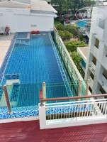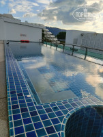 На 5м этаже главного корпуса есть бассейн и несколько лежаков + есть стационарные лежаки в тени под крышей, на фото это видно. Бассейн работает с 8 до 20 часов, размер 4х12 метров, глубина 1,2 метра, есть лягушатник, вода хлорирована в меру. Есть гидромассаж, но включить его надо просить на ресепшен. Пляжные полотенца выдают бесплатно на ресепшен, под запись в журнале.