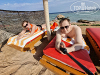 Песочный пляж с коралловой крошкой (обязательно купите обувь кораллки 3-5$, в них приятно ходить по пляжу и плавать), красивый залив с видом на остров "Тиран". Лучшее место в этом отеле коралловый риф - живописные виды с яркими обитателями. На стенах рифа причудливо разместились красивейшие кораллы.