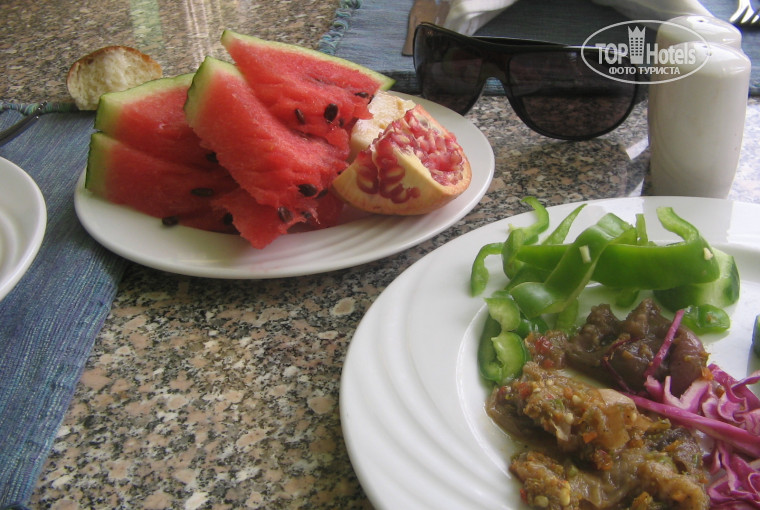 По ПИТАНИЮ следующее... В первое время хотелось всего поесть, попробовать, так уж это красиво и вкусно было, следовательно без смекты не обошлось. Затем брали то, что реально можешь съесть, свои любимые продукты нашлись и сдесь, все в полном порядке. Разнообразие есть, всегда всем всего хватало, вкусно и не очень тоже было, качество и свежесть присутствовали. Но иногда были замечания. Проблема в жрачке у наших больных и вечно голодающих людей всегда была. Такая дама нашлась, толстая страшная, кричала, сколько можно жарить шашлык, кебаб, она вся вспотела и никого не пропускала в очереди. Просто дура, мы спокойно подошли после всех и взяли. Молоко пару раз разбавляли, не знаю зачем, это очень не вкусно, не пили.