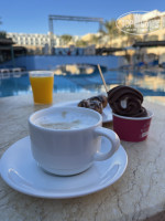 Есть кафешка на отельной МАРИНЕ, на пирсе. Ничего там не брали, сказать не могу.
