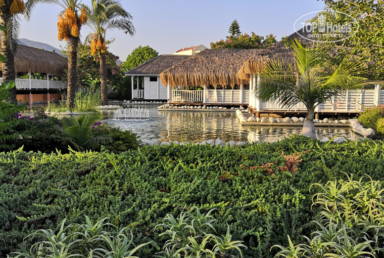 Отель находится в очень укромном месте, недалеко от аэропорта Даламана, что очень хорошо, когда путешествуешь с маленькими детьми👍 территория отеля огромная и очень чистая, ухоженная, красивая😍 очень много растений, на фото есть. Питание разнообразное: каждый день рыба, мясо, овощи, фрукты… номера большие, удобные. Проводится анимация для взрослых и детей, работает детский клуб. Пляж большой и чистый, рядом протекает речка. Недалеко есть гора, мы туда поднимались, оттуда открывается невероятный вид😍 говорят что на пляже черепашек можно увидеть, но нам не попались.персонал дружелюбный, приветливый. Ездили на автобусе в Ортаджу в Вайкики, Де-факто, Мигрос. Также погуляли по Сарыгерме, можно пешком дойти👍 погода была шикарная, не очень жарко, как мы любим. Отдых удался, отель советую👍