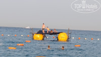 центральная часть с сеткой (муж никакой сетки не обнаружил- только веревку с буйками?), прикольный понтон на баллонах, почему то с него никто не прыгает, хотя можно, справа за правой косой (территория 5ки) риф получше,