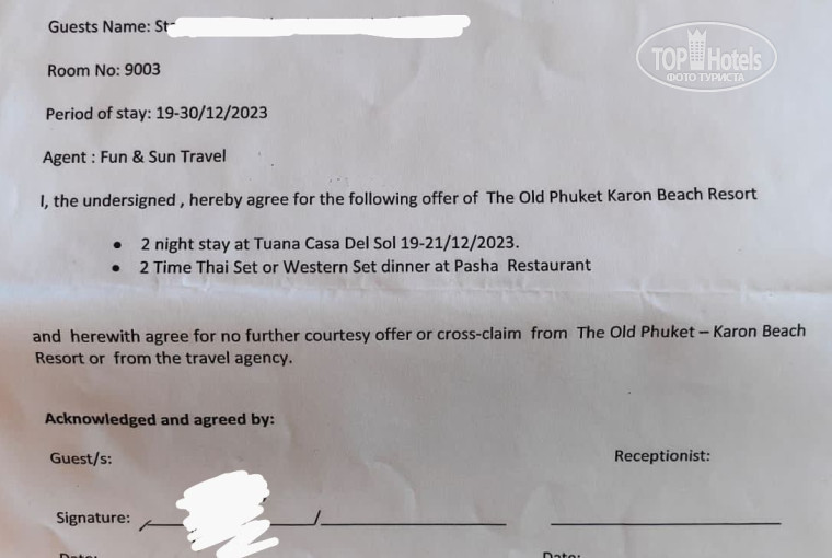 При заселении в отель The Old Phuket девочки на ресепшен молча подсунули нам документы на подпись, где мы даём согласие на переезд в другой отель. Оказалось, у них не было номеров и всех переселяли в другой отель на 2 дня ( ниже классом и на другой пляж Ката).В данном отеле был русскоговорящий «представитель» Алик, который по хамски с нами общался, не старался объяснить ситуацию и даже угрожал.