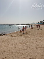Пляж и море: пляж (а точнее лежать) нашего отеля находился немного сбоку от общей пляжной линии и захватывал пирс. Основная часть принадлежала отелю первой линии. Купаться в море мы могли с любой части пляжа. А вот пользоваться лежаками только на своей. За этим следят. Песок в основном мелкий и его достаточно. Заход в море на 90℅ пляжа отличный. На остальной части ( со стороны нашей части пляжа) камни. Но это не мешало. Море чистое, прозрачное. Глубина хорошая для любителей поплавать. Есть сетка от непрошенной живности между двумя пирсами. Рыбки есть в районе пирсов.