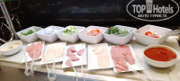 Питание на любой вкус. Много овощей и фруктов. Из фруктов: яблоки трёх видов, бананы, дыня, гуава, мандарины, апельсины, гранат, клубника, инжир, все в достаточном количестве в целом виде и нарезанном.