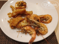 Рыба- филе пангасиуса, креветки, кальмары.