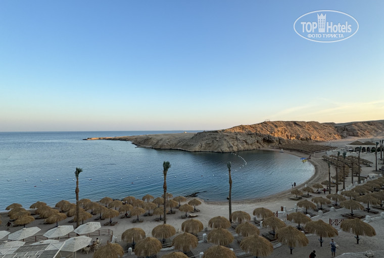Отдыхали в отеле в январе 2024 г., отель находится рядом с бухтой, пляж прямо внизу и из-за такого расположения зимой было очень комфортно загорать и купаться. Погода классная, море теплое )) целыми днями плавали и изучали замечательный риф, который находится в этой бухте. Пляж постоянно убирают, на пляже работали два бара, есть душевые, туалеты, удобные и чистые лежаки. Вход в море для деток хороший - мелкий песочек, риф начинается чуть дальше.