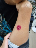 По возвращению домой рана превратилась в язву, выросла в 5 раз, появились миниболячки, очень похоже на стрептодермию.