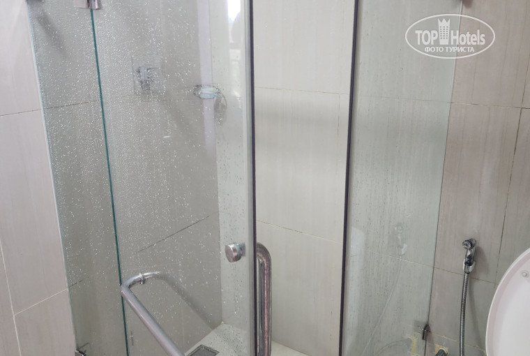 Далее решила помыться после перелета...но вода была, только холодная, а дверь в душ открывалась так, что я туда еле протиснулась....муж крупнее меня ( размер одежды L, т.е. он стройный) но он НЕ мог протиснуться в этот проем что бы зайти в душ! дверь в туалет не закрывалась. Фен не работал. постельное белье все серое, в пятнах.