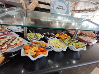 К еде претензий нет. Каждый день новое меню. Единственное что повторяется: фрукты (бананы, апельсины, финики, гуава, дыня), овощи (огурцы, помидоры, свекла, морковь, кабачки), десерты из кокосовой стружки, заварные пирожные с разной начинкой, печенье и многое другое. Морепродукты неплохие.