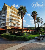 Территория отеля очень маленькая (до этого мы были в отелях в 3-4 раза больше по территории), но очень уютная, зелёная, при въезде растут деревья с лимонами, апельсинами и гранатами. Все очень грамотно и компактно расположено, все есть на территории. Ну и плюс, что далеко ходить не надо, все рядом.