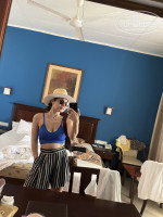 Заселили быстро, номер немного уставший с виду, но отдыху это не помешало. Территория большая, убирают каждый день, но с деревьев все равно падают листья. Питание нормально, есть и фрукты и тортики и мясо. Местные тук тукеры за 300-400 рупий свозят за фруктами, пивом и сувенирами. Пиво продают только в алкомарктах, туда тоже свозят. Не выбрасывайте пустые бутылки - за них дают скидку на пиво 100 рупий😀