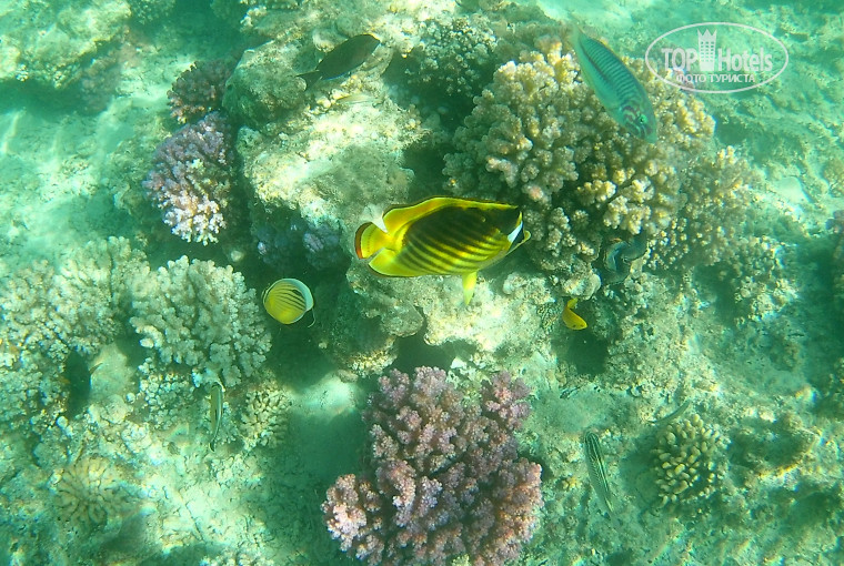 Надо идти на пляж на левую сторону где вывеска ладорада, одевать маску и плыть вдоль буков до самого их окончания и тогда вы поймёте для чего вы приехали в этот отель.