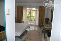 Нас привезли в 12 ночи, дали номер в левом крыле (С) на 4-ом этаже с наружной стороны, где идёт какая-то стройка. Мы были в шоке: с улицы раздавался невыносимый гул работающих, как мне показалось, 100 тракторов «Беларус», не помогали даже раздвижные стеклопакеты. Но как только на стенке я увидел маленького таракана или какого-то другого насекомого (мы были уставшие из-за задержки рейса – мог и перепутать) я стремительно побежал просить замены номера. Дали в том же крыле с тем же видом, но этажом ниже. Я понял, что бороться за номер сегодня нет смысла. От усталости мы свалились спать, не распаковывая чемоданы (боялись, что туда тараканы забегут). Ночь была кошмарная, кондиционер тарахтел, издавая такие хрюкающие и каркующие звуки, предвещающие скорую его кончину – что собственно и произошло ближе к утру. На следующий день при помощи $5 нам на выбор предоставили ещё 3 номера: первый в главном крыле (очень хороший, с ванной, но без балкона), второй в крыле «B» на первом этаже (тоже отказался т.к. на первом этаже было как-то неприятно чувствовать себя под вниманием проходящих мимо окна) и третий опять в крыле «С» но в расположением во внутренний дворик. На этом мы и остановились – см. фото. Кондиционер работал тихо и морозил прилично, мы его даже выключали ночью т.к. замерзали, не смотря на то, что он центральный. Номером остались очень довольны – всё чистенькое, уборка номера каждый день, воду давали по 2 бутылки в день бесплатно. Для трёх звездей, за эти деньги, что мы заплатили – просто супер, поверьте - у нас есть с чем сравнивать! Именно поэтому я поставил «5» за размещение. Так что советуем любой корпус, но с расположение номера во внутренний дворик, т.к. с одной стороны отеля стоял грохот от стройки, с другой стороны отеля с городского пляжа раздалась всю ночь громкая музыка. Все мною просмотренные номера были однотипные – так что выбор только за видом из окна.