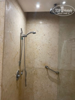 Тапочки и халат тоже отсутствуют. Так же в душевой кабине нет не одной полочки, куда можно было бы поставить шампунь, мочалку.. Неприятный момент, но и не критичный.