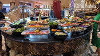Рестораны-выбор хороший , в целом супы, мясо, рыба(белое филе), гарнир, мясная подлива, овощи, салаты, на гриле курица(гриль был каждый вечер), разные пирожные и сладости, фрукты без изысков, алкоголь обычный,средний, пить можно.