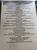 Булочки, яйца вареные, яичница, омлет, гарниры, мясо, рыба, морепродукты в виде крабов, овощи, зелень, салаты, фрукты, сладости, каши, сухие завтраки, сыр, колбаса, сосиски, соусы, масло, пицца, блины, варенье, мед, чай, кофе, соки (типа Yupi).