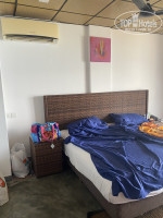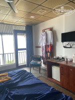 Я получила номер без шкафа для одежды. Но были 2 вешалки для одежды, пришлось повесить одежду на большое зеркало. В номере кровать большая, стол, холодильник, телек, кондей, стул. панорамное окно с большими дырками из-за неплотного прилегания по стыкам, по этой причине отличная слышимость с улицы. Также в номере чай, кофе, сахар, чайник и каждый день вода в бутылке.