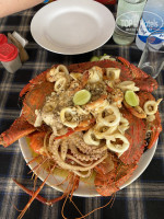 Рядом с отелем кафешек нет. Большое блюдо с морскими гадами на фото - это в кафешке Red Lobster, там где черепаха морская. На фото порция за 10 тыс., брали на четверых. По вкусу так себе, мне больше всего понравился лайм))