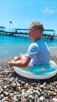 Теперь про питание. Мы попали в год, когда ещё была пандемия. Ко многим столам, чтоб выбрать и положить в тарелку себе еду, нас вечерами не подпускали. Сами повора брали тарелку и ты пыталась издали объяснить что тебе надо. Образовывалась очередь, это конечно не нравилось! Еды было всегда много. Черешня была только раза два на ужин. Днём вкусный арбуз около бара на пляже резали. И там же после обеда давали мороженное, но очередь была огромная. Дети стояли 😄
