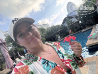 Территория отеля просто шикарная - очень много разной зелени: разные пальмы, растения цветущие и нет, огромные деревья, с которых падали цветочки и отправлялись ко мне в прическу. Несколько раз в день подметали территорию.